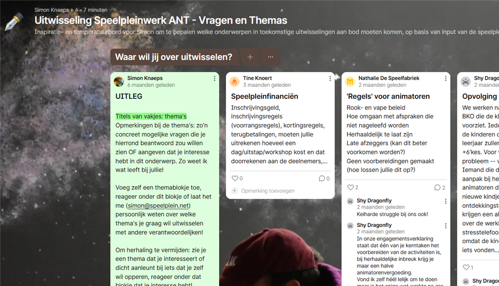 Lekker eten en gezellig keuvelen over speelpleinwerk. We inspireerden elkaar over de sfeer in het animatorenlokaal en hoe we een betere 'ouderfluisteraar' konden worden. Onder vakkundige begeleiding van collega's Arno (WVL) en Kobe (LIM) verdiepten we ons ook in de bijzondere wereld van de Tieners en Speelpleinlogistics.